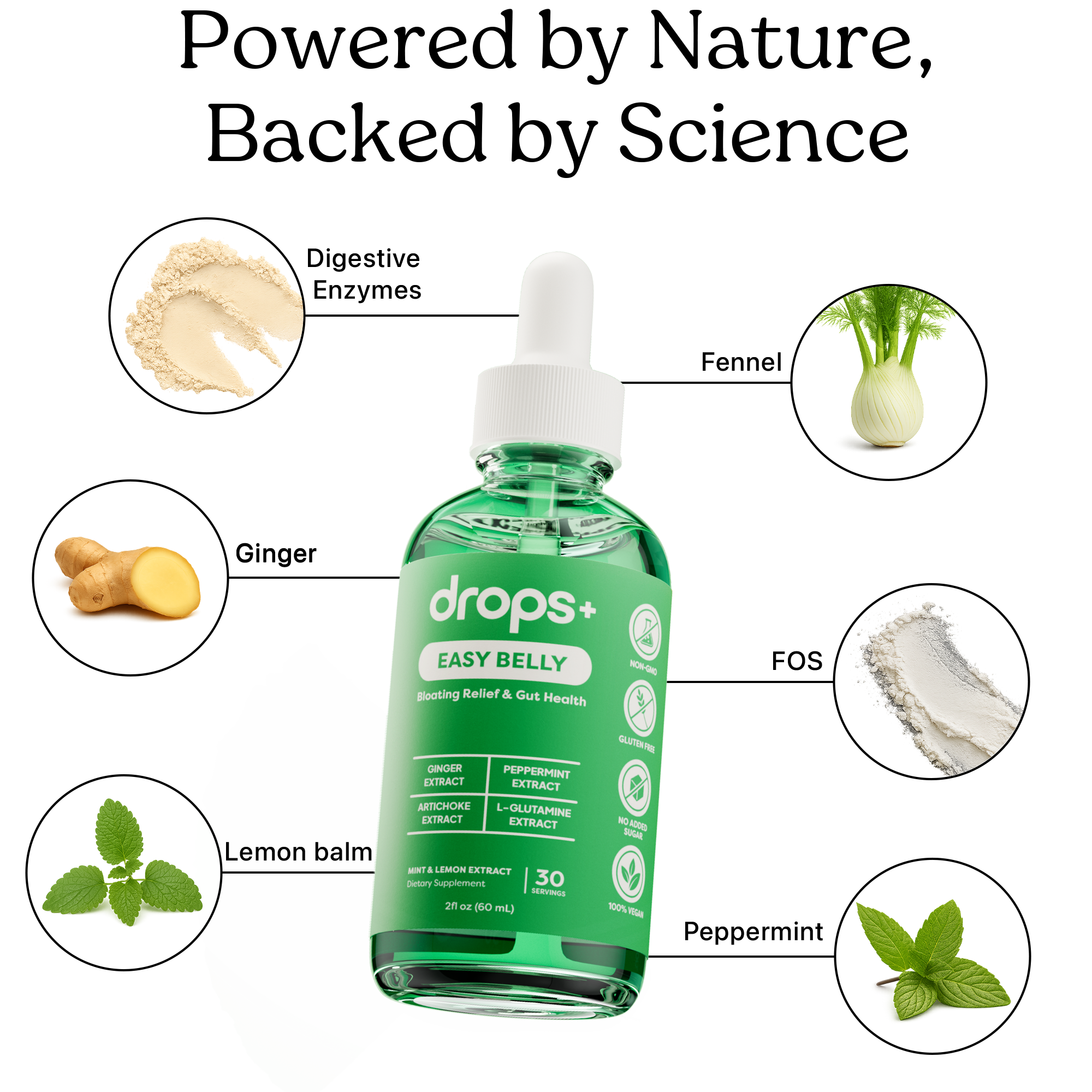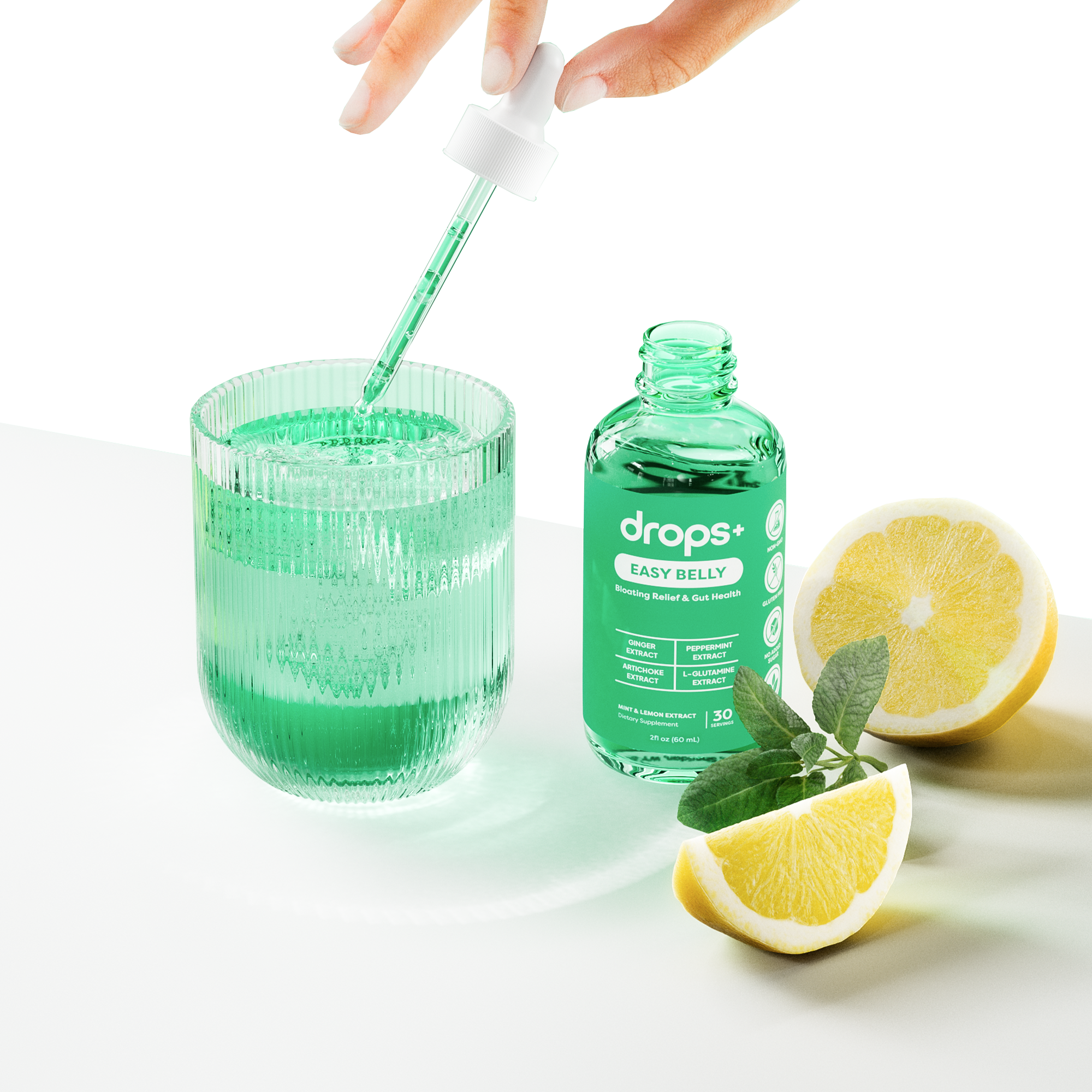 Our Easy Belly drops support comfortable, healthy digestion. They help reduce bloating and promote gut balance naturally. The refreshing cool mint and lemon zest flavor is light and soothing. Feel comfortable and confident after every meal.