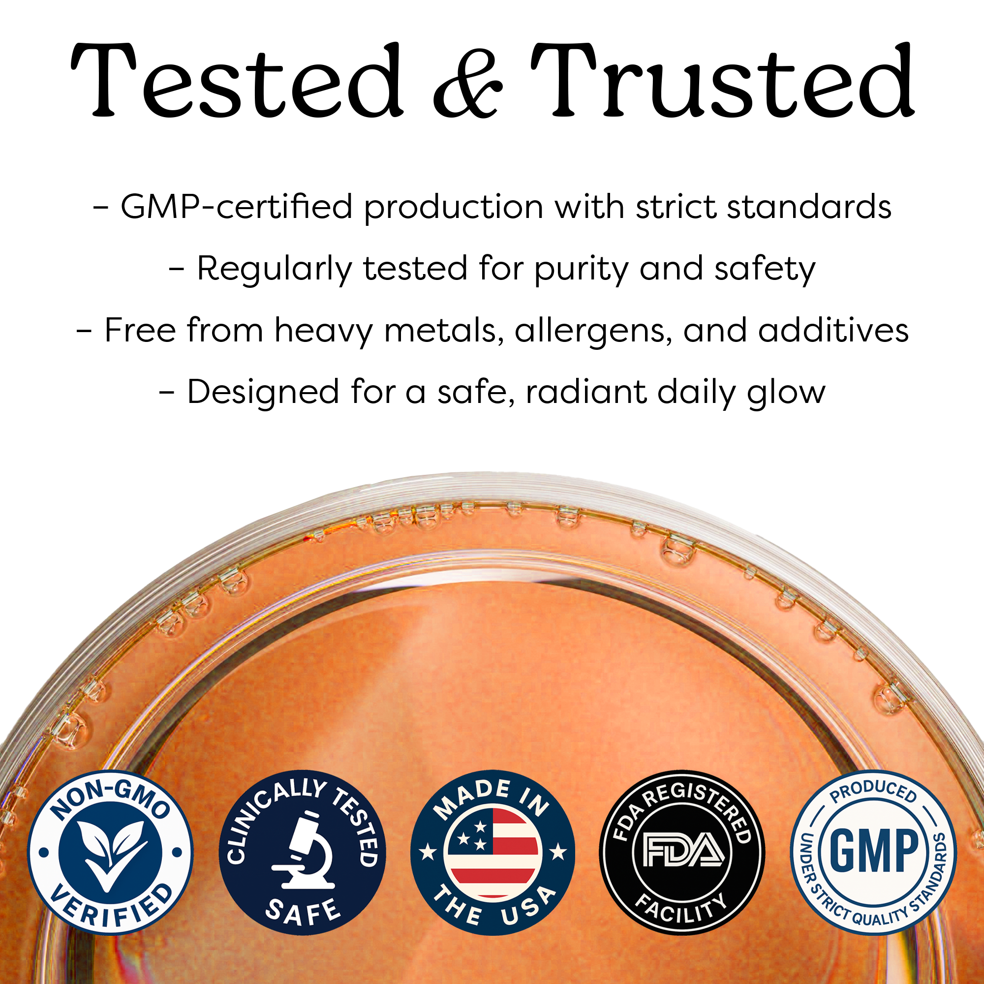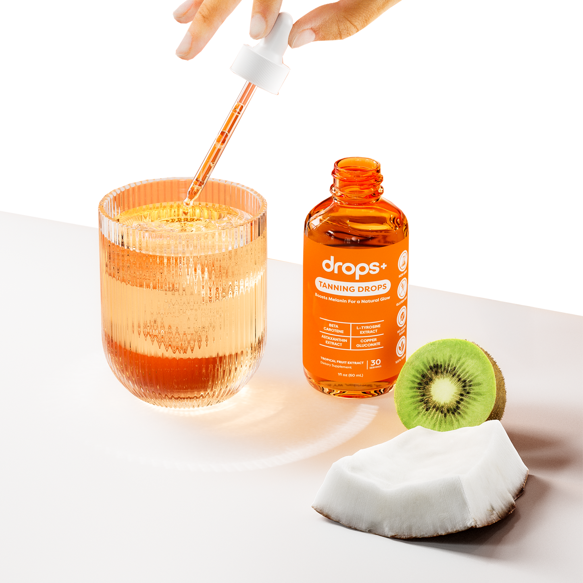 Liquid tanning drops formulated with scientifically-backed ingredients and clinically researched compounds to support healthy melanin production from within, working alongside your body's natural processes to develop a gradual, even glow without UV exposure or topical applications.