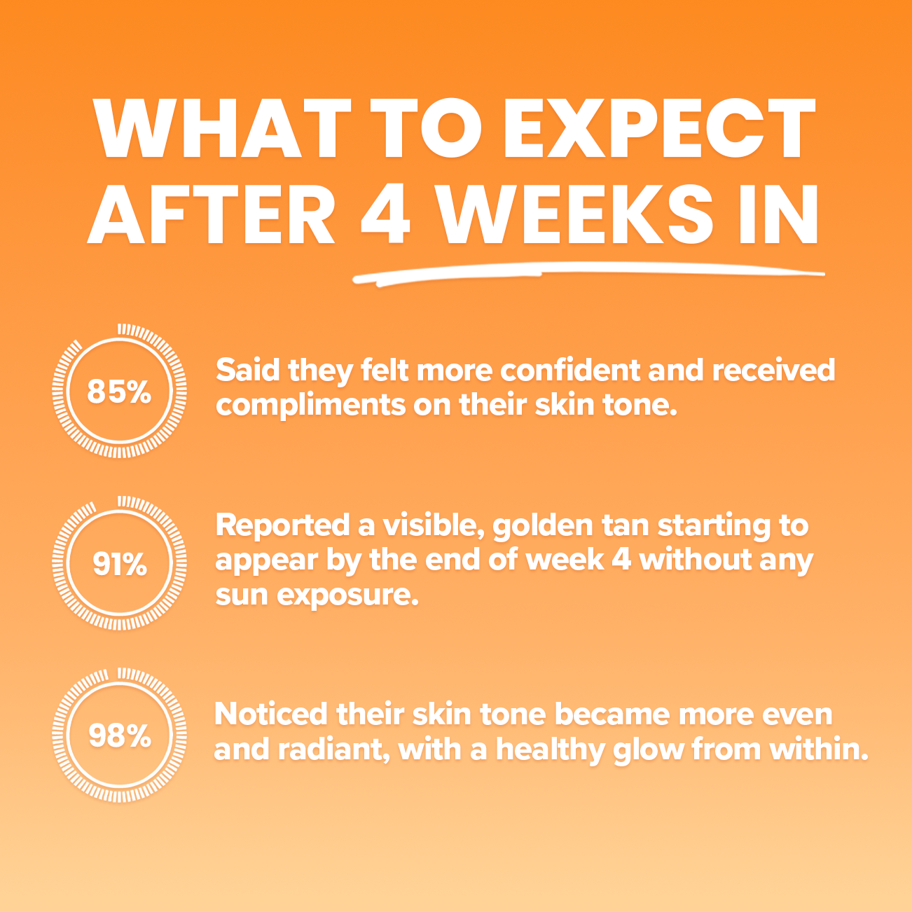 Your body starts producing melanin naturally.By the end of the month, your skin tone looks warmer and more even.