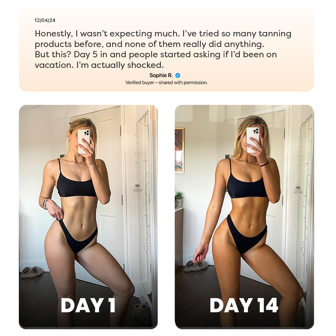 With daily use of 2ml, your tan stays balanced and consistent. No sun, no damage