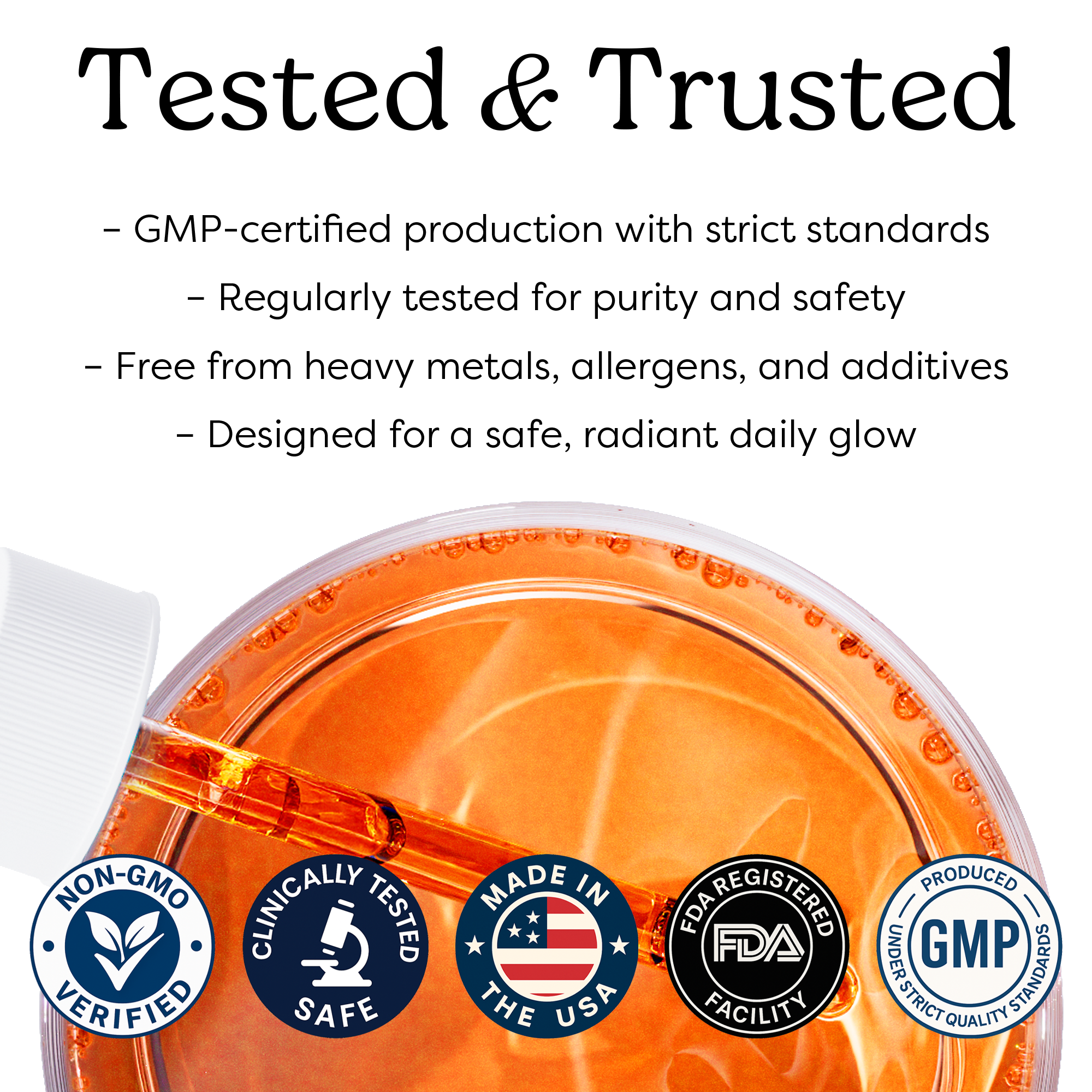 Our Tanning Drops help you build a natural tan from within. They work with your body to support healthy melanin production without UV exposure. The juicy tropical fruit flavor makes them easy to take every day. Results develop gradually for an even, sun-kissed look.